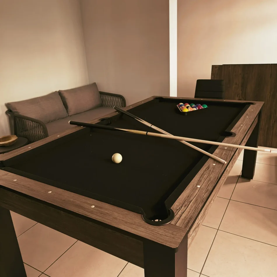 Vous pourrez profiter d'une table convertible en billard ou en table de ping-pong d'un magnifique baby-foot et d'un jeu d'échecs.